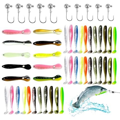 53 Pezzi di Accessori per la Pesca 2 Misure di Testine Piombate Spinning 43 Pz Esche Artificiali Spinning Mare Shad Spinning Accessori da Pesca per pesci di acqua dolce e salata