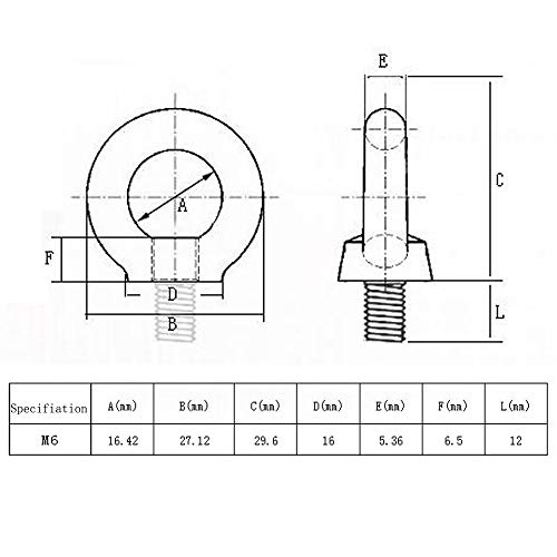 Dimensioni: Il diametro della filettatura del golfare è 6 mm, la lunghezza del filo è 12 mm, il diametro interno dell'anello è 16,4 mm, il diametro esterno dell'anello è 27 mm, il diametro della base è 16 mm, la lunghezza della base è 6,5 mm.