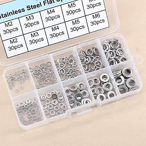 Pacchetto dimensioni: piatto Rondelle m2 m3 M4 M5 M6, rondella elastica: M2 M3 M4 M5 M6, totale 300Pcs
