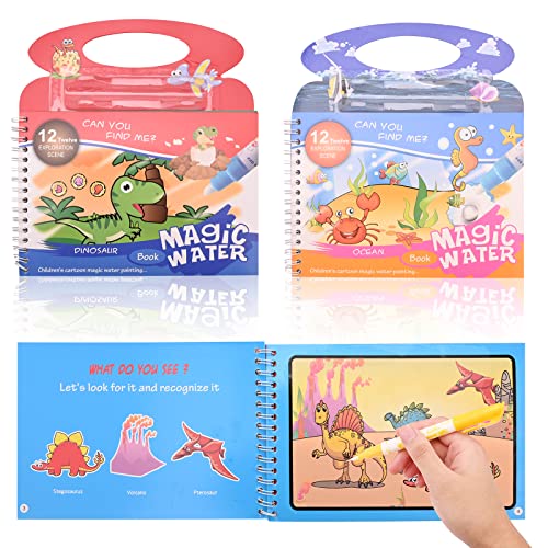 2 pezzi Acqua magica colorazione Libro,Libro di disegno magico per bambini con penne,Libro di pittura ad acqua riutilizzabile per bambini per bambini, ragazzi, ragazze, regali per l'apprendimento (A)