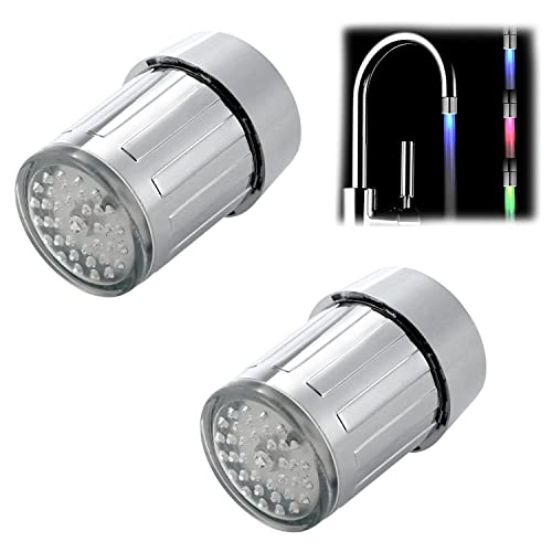 2 pezzi Acqua Rubinetto Led Colorato(Con Adattatore), 3 Colori Che Cambiano, Led Faucet Temperature Sensor, Rubinetto Lavandino Bagno, Rubinetto per Cucina, Utilizzato in Case,Hotel, ect (3 colori)