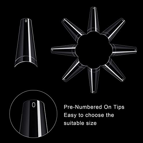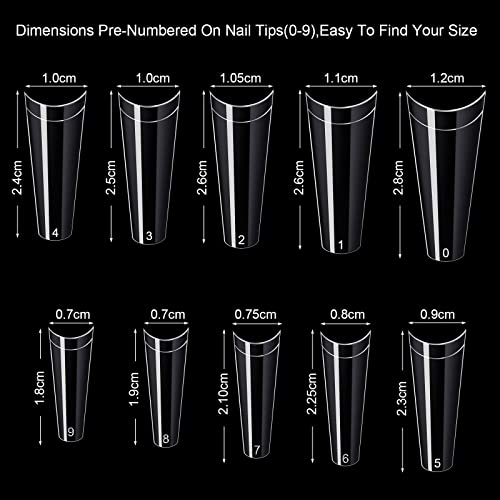 Riceverai 500 pezzi di punte per unghie trasparenti extra lunghe in 10 misure tra cui scegliere, 50 pezzi per misura.