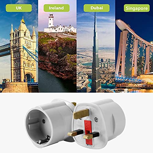 【Adattatore per spina da Europa a Regno Unito】: converte spine a 2 pin senza messa a terra (tipo C ed E/F) e spine di tipo G a 3 pin con messa a terra. Viaggia da Germania, Francia, Spagna, Polonia, Norvegia, Svezia verso Regno Unito, Regno Unito, Inghilterra, Dubai, Hong Kong, Irlanda e molti altri.