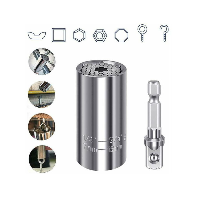 Uno strumento sostituisce l'intero: focalizzate su un concetto semplice ed efficace, le prese universali AYABAY possono essere regolate istantaneamente a qualsiasi dimensione o forma per dadi standard da 1/4" a 3/4" e metrici da 7 mm a 19 mm e vari altri forme e dimensioni. oggetti. Non è necessario acquistare un mucchio di strumenti separati quando si utilizzano diversi tipi di elementi di fissaggio. Presa universale fantastica! Set di prese super universali, svita qualsiasi bullone, soddisfa tutte le tue esigenze e migliora l'efficienza del lavoro Taglia unica: questa presa è universale, il che significa che può essere utilizzata istantaneamente con qualsiasi occhiello, dado esagonale, ritardo bullone, gancio, testa del bullone, dado ad alette e dado quadrato. Prese universali per viti, dadi e bulloni standard da 1/4 a 3/4 di pollice e metrici da 7 mm a 19 mm per soddisfare tutte le tue esigenze. I multi-strumenti possono farti risparmiare tempo sui lavori leggeri. Questo è un