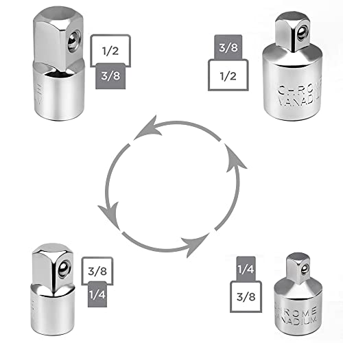 4 Pezzi Set di Adattatori Adattatore per Bussola da Adattatori Portainserti Chiave Set Acciaio al Cromo per Chiavi di Riparazione per Automobili 1/2" a 3/8", 3/8" a 1/2",1/4" a 3/8",3/8" a 1/4"