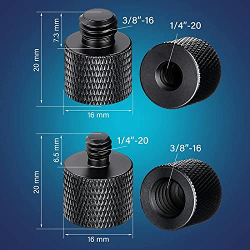 [Modello conveniente con superficie liscia] Offriamo adattatori filettati da 3/8 maschio a 5/8 femmina e da 5/8 maschio a 3/8 femmina. La femmina da 3/8" si adatta ai supporti per microfono standard, la vite maschio da 5/8" si adatta ai supporti per microfono o alle fotocamere con un adattatore a vite per treppiede. Ampia gamma di accessori, ti aiuta a combinare più opzioni di rig per ottenere libertà nel tuo servizio fotografico.