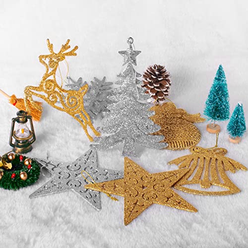 【Materiale】: Ornamenti albero di natale in plastica, bello e resistente. Ogni ornamenti è coperto da uno strato di glitter brillante.Abbiamo usato il doppio dei glitter per una migliore decorazione natalizia. Per favore, non preoccuparti che gli Ornamenti che riceverai cadranno glitter, questo è normale.