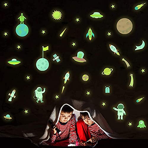 Gestisci i tuoi bambini "Cruising Space" sogno: gli adesivi da parete luminosi a tema spazio esterno porteranno divertimento a voi bambini durante la notte.