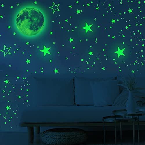 505 Pezzi Adesivi Fluorescenti, VEGCOO Luna Stelle Luminose Decorazione Adesivo, Adesivo da Parete Luminoso per Letto Soffitto Cameretta Finestra Soggiorno, Regalo di Feste Compleanno per Bambini