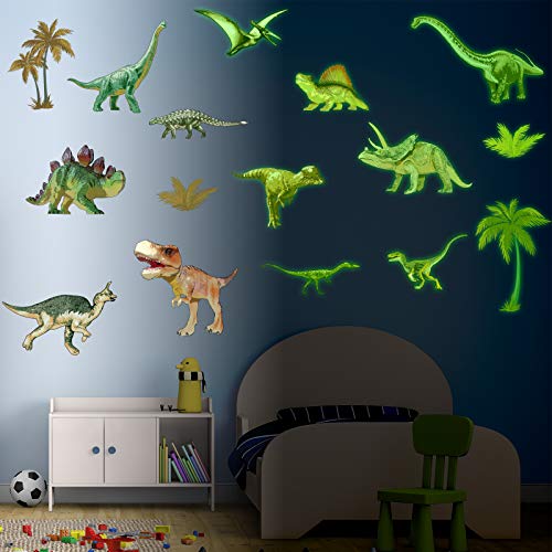 12 Pezzi Adesivi Murali Dinosauro Bagliore al Buio Adesivi Bagliore Dinosauro Muralie 4 Adesivi Alberi di Cocco per Bambini Camera Camera da Letto Soggiorno Aula Casa Decorazione