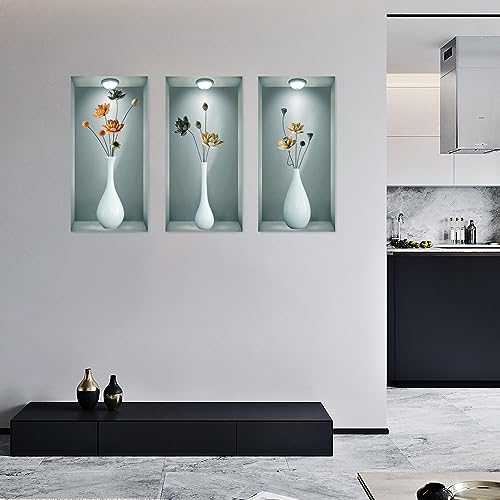 3 Pezzi Adesivi Da Parete 3D Vaso Moderno Bianca Vasi Adesivo Murali 3D Vaso Poster per Soggiorno,Bagno,Cucina(20 x 40 cm)