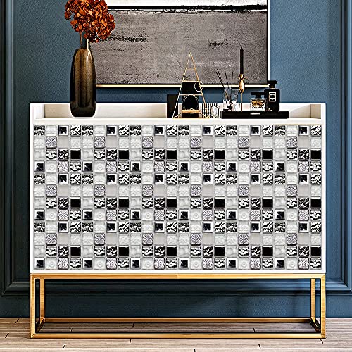 20 Pezzi Adesivi per Piastrelle Decorazione da Parete Adesivi per Piastrelle Adesivi per Cucina di Casa Bagno Stile Mosaico Adesivi Autoadesive Peel & Stick (10x10 cm, Metallo grigio)