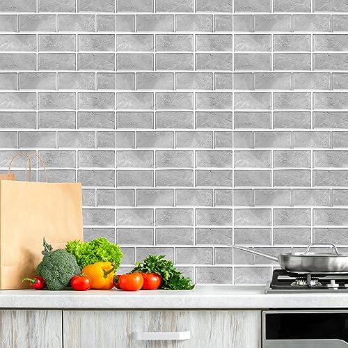 18 Pezzi Adesivi per Piastrelle da parete, Piastrelle da Parete Autoadesive, Adesivi Mattonelle Impermeabile PVC Adesivi Piastrelle Per Bagno e Cucina, 32 x 19cm, Grigio