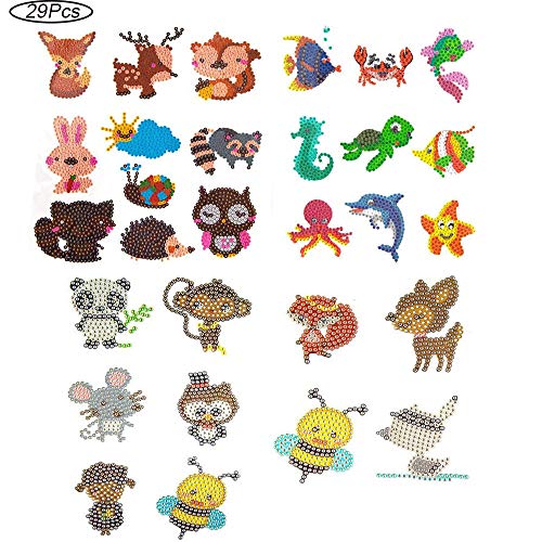 29 Pezzi Adesivi Pittura Diamante per Bambini, Carino Animale Diamante Pittura Adesivi, per Adulti Principianti Bambini Fatta a Mano Arte Bricolage