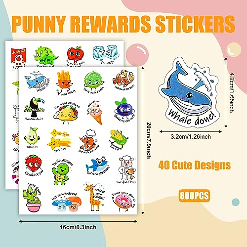 800 Pezzi Adesivi Ricompensa Punny, Adesivi Ricompensa Bambini Carini Cartoni Animati Adesivi Motivazionali Bambini per Insegnanti Aula Studenti Materiale Scolastico (40 Fogli)