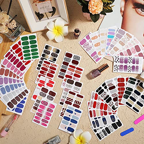 Combinazione colorata: riceverai 40 fogli di adesivi per smalto per unghie in vari modelli, inclusi 20 fogli da 14 pezzi, 20 fogli da 12 pezzi, 520 pezzi in totale, viene fornito anche con 5 pezzi di lime per unghie per aiutarti a manicure le unghie, un completo impostare per te bellissime opere di unghie arte fai da te