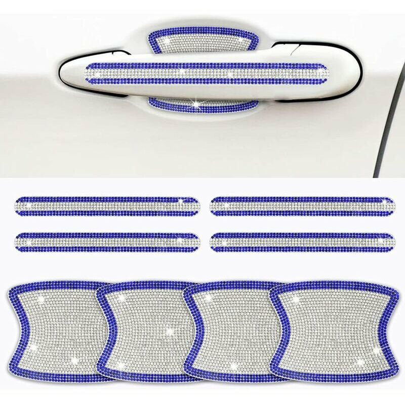 Adesivi per maniglia della portiera dell'auto con strass - Realizzati con superfici tagliate multiple e strass ad alta densità, gli adesivi per la maniglia della portiera dell'auto in cristallo lucido daranno alla tua auto un effetto scintillante. Questi adesivi in grado di presentare diversi effetti lampeggianti sotto luce diversa, fanno risaltare l'auto. Questa protezione antigraffio per la maniglia della portiera dell'auto può essere utilizzata anche come avviso di effetto riflettente notturno per garantire la sicurezza di guida. adesivi, protezione lucida bella e resistente, adesivi universali adatti a molte auto. 【Facile da installare】 Seguendo alcuni semplici passaggi (si consiglia di fare riferimento a immagini o video), è possibile installare facilmente il protezione del manubrio dell'auto in pochi minuti. Assicurati prima che la superficie della maniglia dell'auto sia pulita e asciutta, quindi rimuovi la pellicola protettiva sul retro, quindi puoi incollarla nella posizione