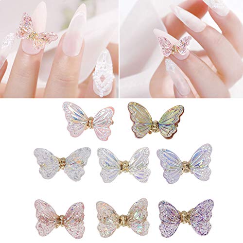 8 pezzi adesivi per unghie, farfalla zircone delicato ornamento ciondolo accessori di design fai da te fatti a mano per saloni di bellezza professionali o uso domestico