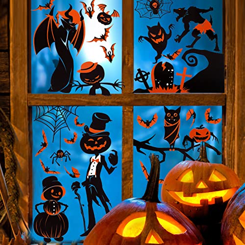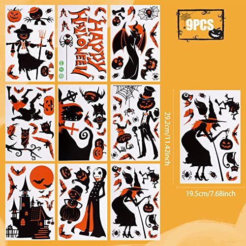 9 Pezzi Adesivi per Vetrine di Halloween Adesivi Riutilizzabili per Decorazioni di Halloween Doppi Lati Adesivi in PVC Decorazioni per Finestre Zucca Strega Decorazioni di Halloween
