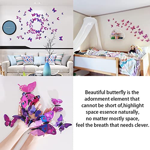 24 Pezzi 3D Adesivo da Parete Farfalla, Farfalla Decorative da Parete per la Camera da Letto e la Festa di Compleanno(Viola)