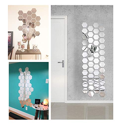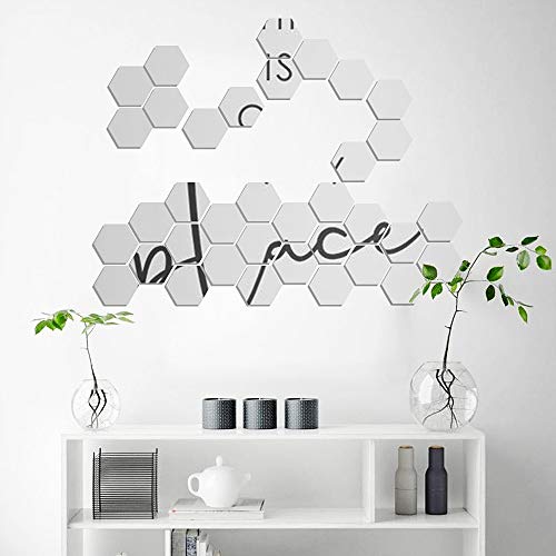 36 pezzi Adesivo Specchio Esagono Murali da Parete Decorativo Decorazione per Casa Armadio Muro Camera Salotto Bagno