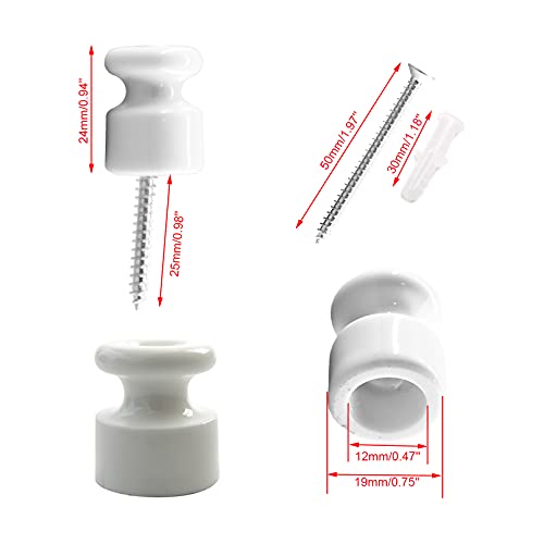 8 pezzi Aisladore di porcellana per cavo tessile per installazione elettrica vintage, diametro: 20 mm