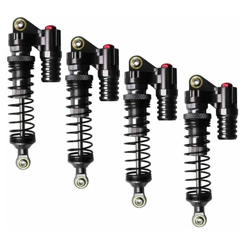 Applicazione: modello di auto RC 1/10 SCX10, Wrangler RC4WD D90, Tamiya CC01, Ghost, ecc. Assorbono efficacemente le vibrazioni su strade sconnesse e riducono l'impatto della velocità. Materiale del prodotto: lega di alluminio alluminio, titanio rivestimento sulla superficie. È durevole, di buona qualità, resistenza agli urti, resistenza alla corrosione. Distanza da foro a foro (compressione): 65 mm. Distanza da foro a foro (non compresso): 90 mm.Lunghezza totale: 100 mm. Lunghezza corsa: 25 mm. Diametro molla: 1,2 mm. Diametro dell'asta centrale: 3,5 mm. Larghezza del tallone della rotula: 7,5 mm. La caratteristica del doppio ammortizzatore a pressione negativa è l'aggiunta di un cilindro secondario accanto al corpo del cilindro principale. La funzione principale è aumentare la capacità dell'olio dell'ammortizzatore e allo stesso tempo semplificare il metodo di regolazione della forza di smorzamento per evitare ai giocatori di regolare l'ammortizzatore. Quando la forza di smorzamento