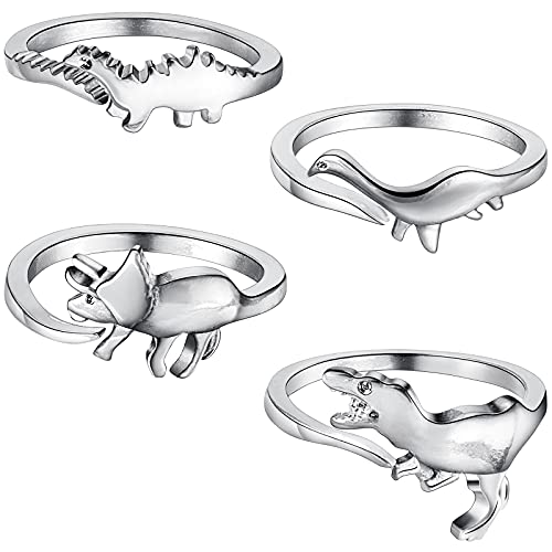 4 Pezzi Anelli di Dinosauro Anelli di Dinosauro Regolabili Aperti Anelli a Forma di Dinosauro d'Argento Vintage Gioielli in Lega di Rame per Donne e Uomini