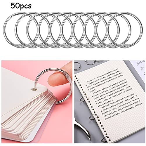 50 Pezzi Anelli per Fogli, Anelli per Libro in Metallo, Anelli a Libro d'argento per Libro Scrapbooking Album Mestiere Fai Da Te, Anelli a Fogli Mobili Raccoglitori, Anelli Circolari per Ufficio(25MM)