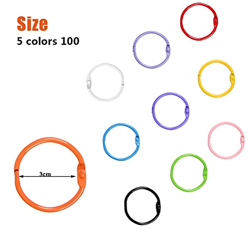100 Pezzi Anelli per Raccoglitore, Anelli Metallici, Anelli del Libro, Anello di Libri in Metallo Anelli a Foglia Mobile, Anello di Rilegatura a Colori, Anelli Circolari per Album Scrapbooking(30mm)