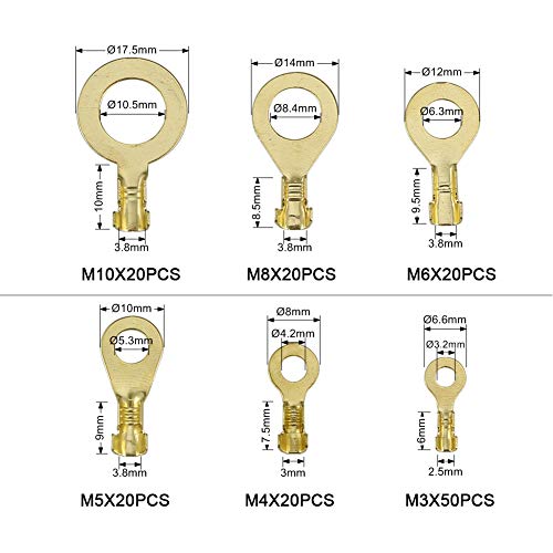 150 pezzi Anello capicorda Anello occhi Ottone crimpato Connettore cavi Terminali filo Assortimento M3 M4 M5 M6 M8 M10