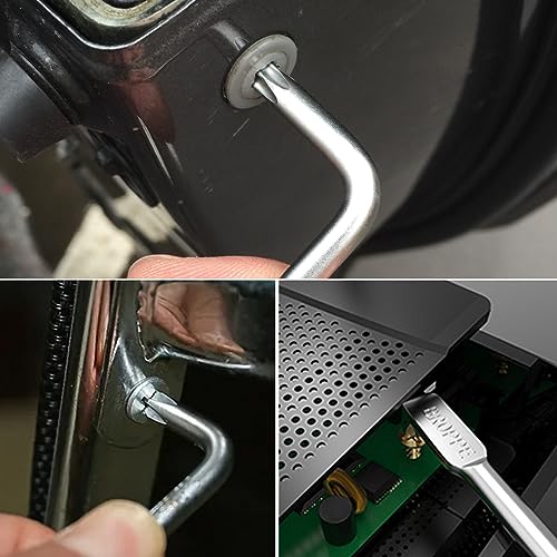 ● Facile da usare in spazi ristretti: design di tipo Z, cacciavite a 90 gradi, la coppia è lunga, l'operazione consente di risparmiare manodopera, adatta a luoghi ristretti e spazio limitato. La dimensione del piccolo set di cacciaviti è di circa 17,2x3 cm e 13,3x2,3 cm.