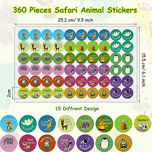 12 Pezzi Animale Grafico per Premi con Adesivi Include 6 Animali della Giungla Tabella delle Ricompense, 6 Fogli/ 360 Pezzi Safari Adesivi Animali per Formazione Comportamento di Bambini