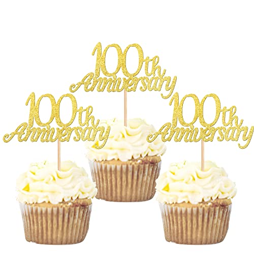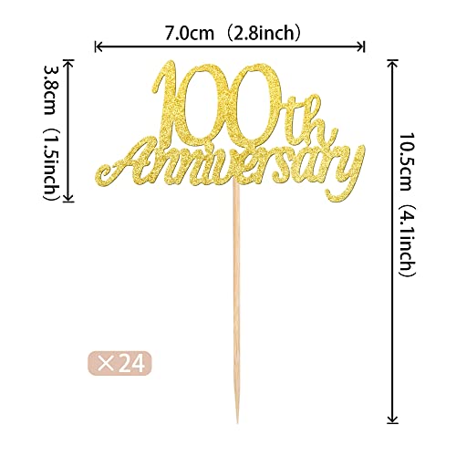 24 pezzi 100 Anniversary Cupcake Toppers Glitter "Happy 100th Anniversary Anniversary Topper Numero 100 Diciotto Sweet 100 Compleanno Anniversario Festa Compleanno Decorazioni Torte Accessori Oro