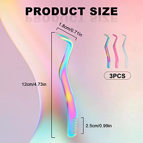 3 Pezzi Applicatore Ciglia Finte, Pinzette per Estensione Ciglia in Acciaio Inossidabile con Pettine per Ragazze Donne Principianti Truccatori(Argento, Rosa, Colorato)