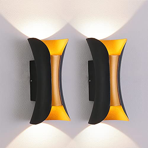 ★【Specifiche del prodotto】: Applique da parete led per esterni di alta qualità, potenza 10w, dimensioni H20xW10cm, lumen 800LM, guscio Nero + oro interno, temperatura di colore 4000k luce naturale.