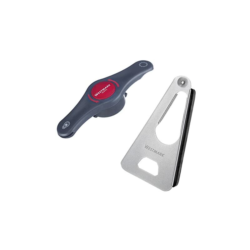 Westmark Set da 2 pezzi: 1 apriscatole multiuso + 1 apriscatole multiple in plastica / acciaio / gomma di alta qualità, Twist/ela, argento/antracite/rosso