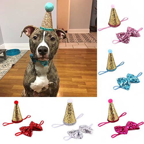 2 Pezzi Archetto per Animali Domestici + Nodo a Farfalla Adorabile Pet Paillettes Piccolo Elastico Decorazione Solida Nodo Corona (Bianco)