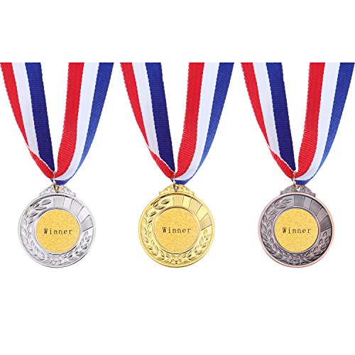 Confezione: include 4 medaglie d'oro, 4 medaglie d'argento e 4 medaglie di bronzo, 12 medaglie totali, adatto a partite multiple, a squadre e in classe, ogni medaglia ha il nastro per l'usura