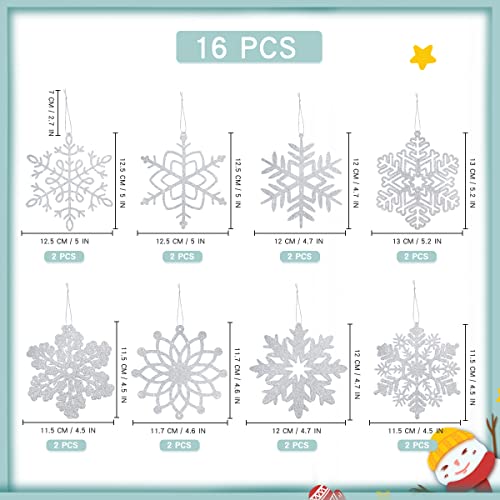 16 Pezzi Argento Ornamenti di fiocchi di neve glitterati natalizi Fiocchi di neve invernali Fiocchi di neve appesi all'albero di Natale per la decorazione domestica delle vacanze invernali di Natale