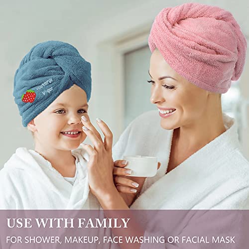 Contenuto: 3 pezzi asciugamani per capelli ad asciugatura rapida,rosa,viola e blu con 2 fermacapelli rosa.