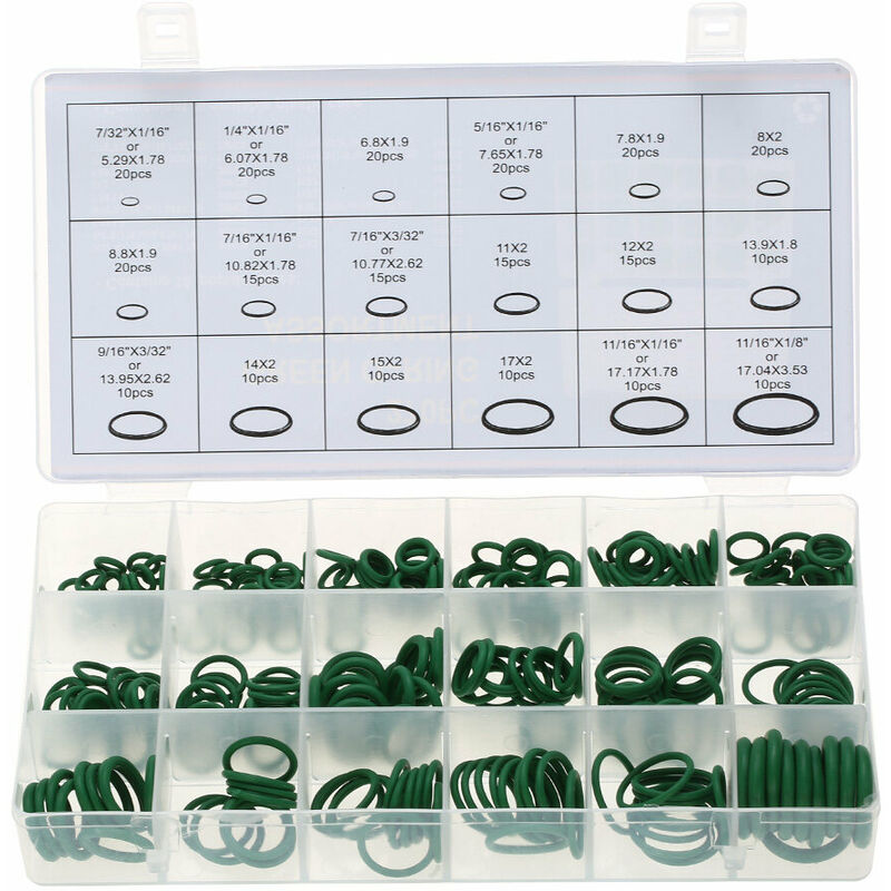 Caratteristiche: La gomma nitrilica butadiene idrogenata (HNBR), nota anche come nitrile altamente saturo (HSN) è una classe speciale di gomma nitrilica (NBR), l'HNBR può essere formulata per soddisfare temperature di applicazione comprese tra -45 gradi C e 165 gradi C e HNBR è classificato da ASTM come polimero di tipo DH. Gli anelli in gomma per impieghi gravosi sono disponibili per l'utilizzo in applicazioni che richiedono una maggiore resistenza agli agenti chimici e temperature più elevate rispetto all'NBR. Il set di assortimento di o-ring è imballato da una custodia in plastica trasparente con chiusura a scatto con scomparti per l'identificazione. 270 pezzi in una custodia totalmente e 18 tipi di O-ring per dimensioni. garage, idraulico, meccanico, officine, riparazioni, collegamenti aria e gas. Specifiche: 20 pezzi 7/32" x 1/16" 20 pezzi 1/4" x 1/16" 20 pezzi 6.8x 1.9 20 pezzi 5/16" x 1/16" 20 pezzi 7.8 x 1.9 20 pezzi 8 x 2 20 pezzi 8.8 x 1.9 15 pezzi 7/16" x 1/16" 15 pezzi
