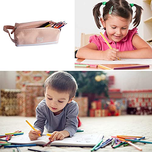 2 Pezzi Astuccio Portamatite Make up,Astuccio in Tessuto Oxford,20cm*8cm*8cm Astuccio per Matite a Doppio Strato,Conservazione Conveniente,per Cosmetici,Cancelleria,Chiavi(Rosa/Beige)