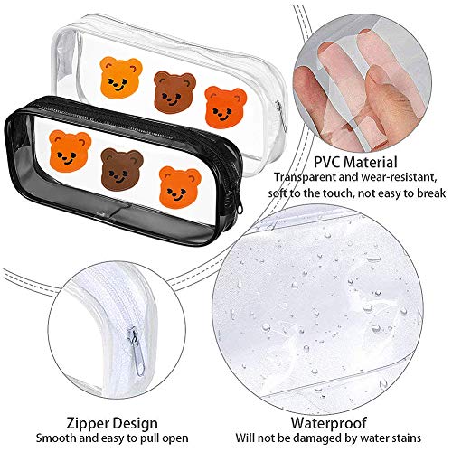 2 Pezzi Astuccio Trasparente,Sacchetto di Matita Impermeabile Astuccio Trasparente con Grande Capacità,Borsa per Cancelleria per Studenti o Sacchetti per Cosmetici,Invia Adesivi a Forma di Orso