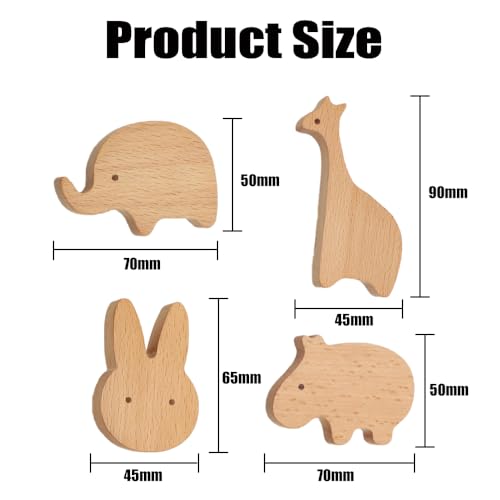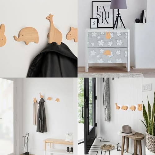 Simpatico design di animali: Il gancio per abiti in legno adotta un simpatico design di animali da cartone animato, inclusi quattro stili: Coniglio, elefante, ippopotamo e giraffa. Questi adorabili disegni aggiungeranno un tocco di divertimento e vita alla tua casa.