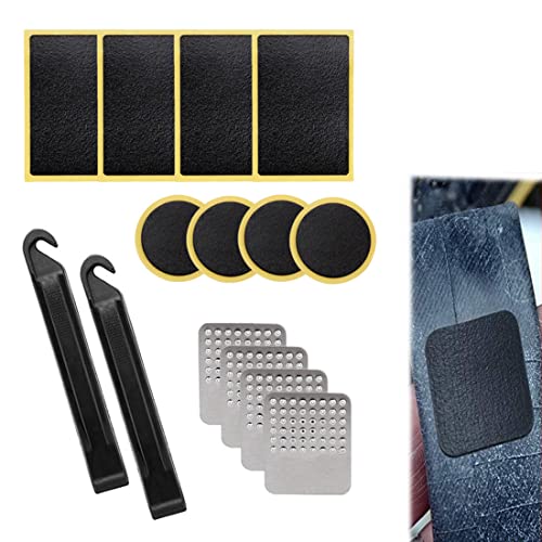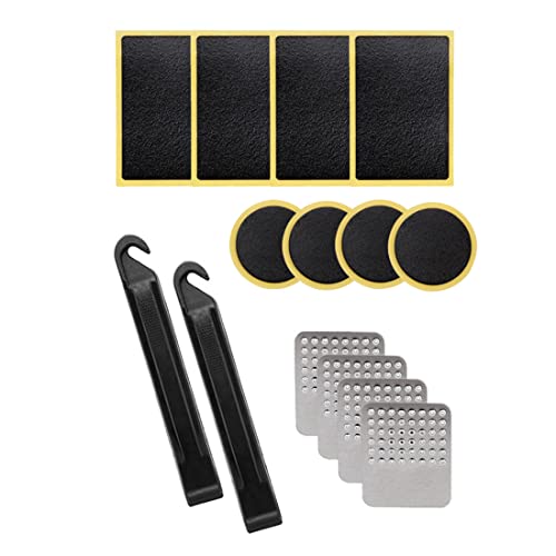 ✅ Contenuto della confezione: Un kit completo per la riparazione delle forature della bici: 4 toppe rotonde non adesive per la riparazione delle forature, 4 toppe rettangolari non adesive per la riparazione delle forature, 4 lime metalliche, 2 leve per pneumatici, quantità e peso adeguati Leggero in modo da poterlo portare ovunque. Usa sempre e ovunque.