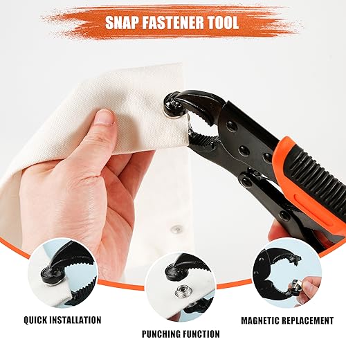 Ampia applicazione: il nostro kit di strumenti a fissaggio a scatto può essere utilizzato su una varietà di materiali, come coperture per barche, tela, cucito, teloni, ecc.