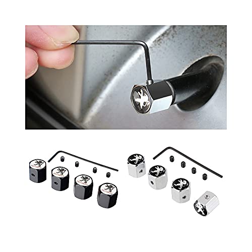 4 Pezzi Auto Pneumatico Cappucci Valvole Stelo, per Peugeot Logo 308 408 508 205 206 208 3008 2008 Coprivalvola Tappi Coperchio Parapolvere Copri Ruota Ermetico con Logo Guarnizione in Gomma Accessori