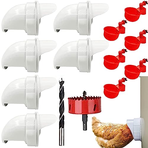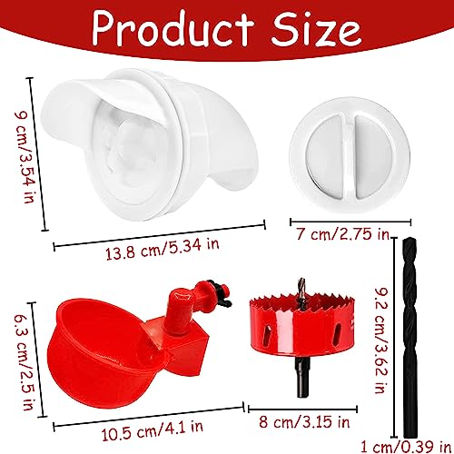 NMM 6 Pezzi Automatica Mangiatoie Per Polli E 6 Pezzi Tazza Abbeveratoio Per Galline Antispreco, DIY Set Di Mangiatoie Antipioggia Per Pollame, Per Polli, Uccelli, Anatre, Tacchini (Bianco+Rosso)
