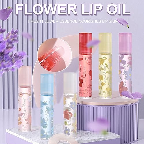 6 pezzi Autunno & Inverno Piccolo Fiore Trasparente Scintillante Idratante Roller Ball Rossetto Idratante Lucidalabbra Olio Labbra Idratante